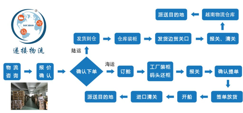 (4)抵达越南的港口后,在递接物流公司代理的协助下进行清关,随后拆柜装车送货上门,货主签收。